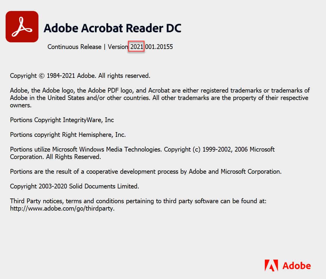 ค้นหาเวอร์ชั่น Adobe Acrobat Reader DC ที่ใช้งานอยู่